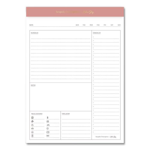 Bespoke Letterpress Daily Desk Notes Planner Pad, 7 x 9, Camellia Pink Headband, Undated